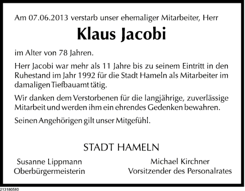Hier finden Sie alle Traueranzeigen aus der Zeitung, die bisher für Klaus Jacobi erschienen sind. Weitere Traueranzeigen, die in der Zeitung erscheinen, werden hier ebenfalls aufgelistet