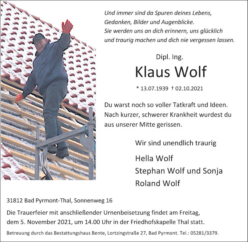 Hier finden Sie alle Traueranzeigen aus der Zeitung, die bisher für Klaus Wolf erschienen sind. Weitere Traueranzeigen, die in der Zeitung erscheinen, werden hier ebenfalls aufgelistet