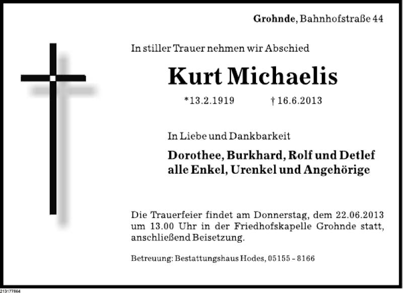 Hier finden Sie alle Traueranzeigen aus der Zeitung, die bisher für Kurt Michaelis erschienen sind. Weitere Traueranzeigen, die in der Zeitung erscheinen, werden hier ebenfalls aufgelistet