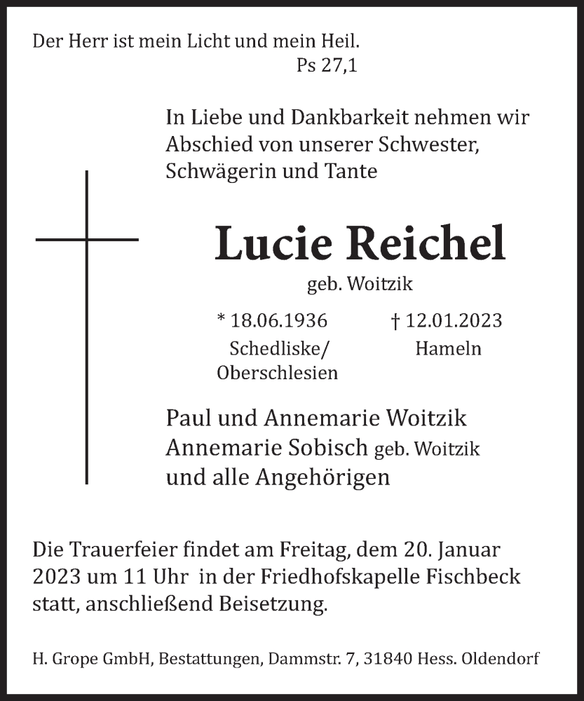 Hier finden Sie alle Traueranzeigen aus der Zeitung, die bisher für Lucie Reichel erschienen sind. Weitere Traueranzeigen, die in der Zeitung erscheinen, werden hier ebenfalls aufgelistet