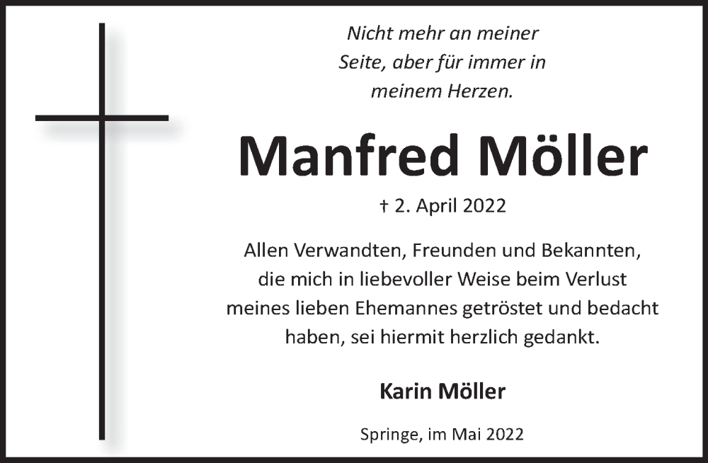 Hier finden Sie alle Traueranzeigen aus der Zeitung, die bisher für Manfred Möller erschienen sind. Weitere Traueranzeigen, die in der Zeitung erscheinen, werden hier ebenfalls aufgelistet