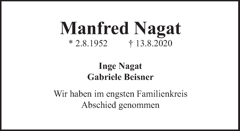 Hier finden Sie alle Traueranzeigen aus der Zeitung, die bisher für Manfred Nagat erschienen sind. Weitere Traueranzeigen, die in der Zeitung erscheinen, werden hier ebenfalls aufgelistet