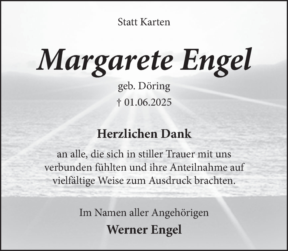 Hier finden Sie alle Traueranzeigen aus der Zeitung, die bisher für Margarete Engel erschienen sind. Weitere Traueranzeigen, die in der Zeitung erscheinen, werden hier ebenfalls aufgelistet