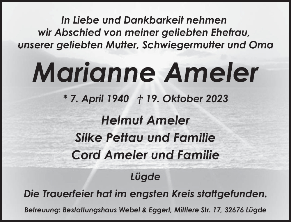 Hier finden Sie alle Traueranzeigen aus der Zeitung, die bisher für Marianne Ameler erschienen sind. Weitere Traueranzeigen, die in der Zeitung erscheinen, werden hier ebenfalls aufgelistet