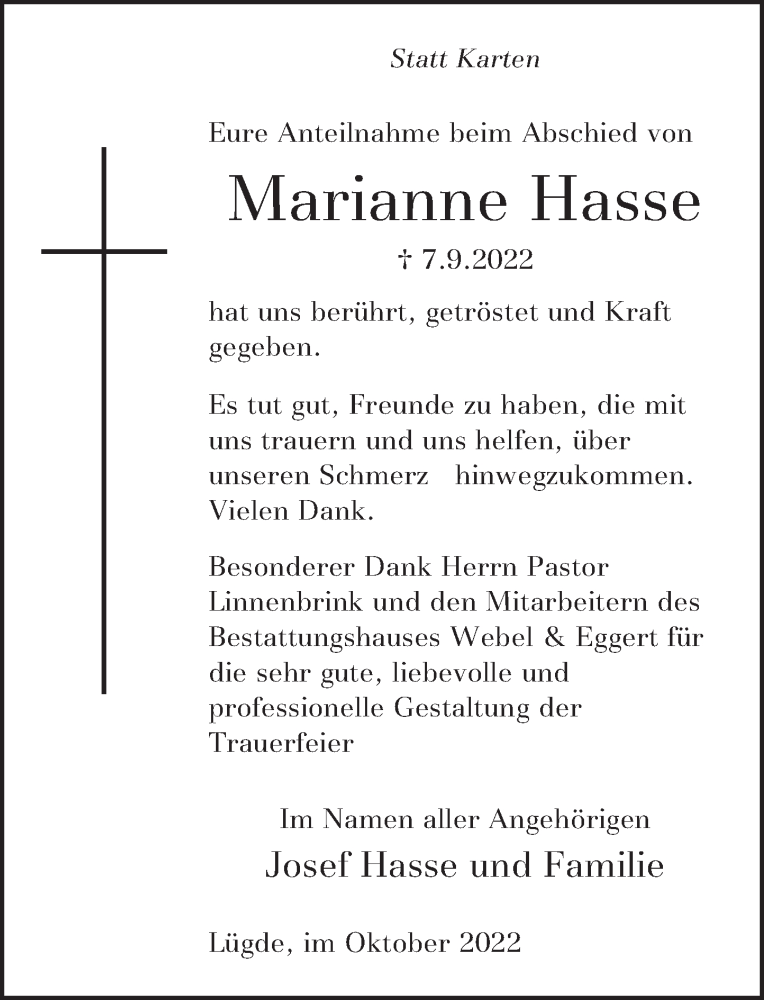Hier finden Sie alle Traueranzeigen aus der Zeitung, die bisher für Marianne Hasse erschienen sind. Weitere Traueranzeigen, die in der Zeitung erscheinen, werden hier ebenfalls aufgelistet