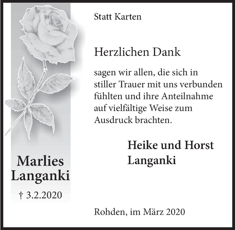 Hier finden Sie alle Traueranzeigen aus der Zeitung, die bisher für Marlies Langanki erschienen sind. Weitere Traueranzeigen, die in der Zeitung erscheinen, werden hier ebenfalls aufgelistet