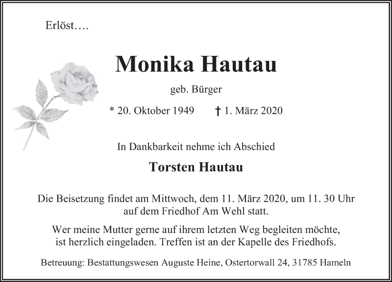 Hier finden Sie alle Traueranzeigen aus der Zeitung, die bisher für Monika Hautau erschienen sind. Weitere Traueranzeigen, die in der Zeitung erscheinen, werden hier ebenfalls aufgelistet