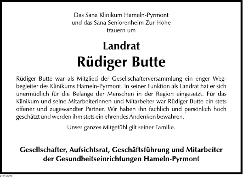 Hier finden Sie alle Traueranzeigen aus der Zeitung, die bisher für Nachruf R. Butte erschienen sind. Weitere Traueranzeigen, die in der Zeitung erscheinen, werden hier ebenfalls aufgelistet