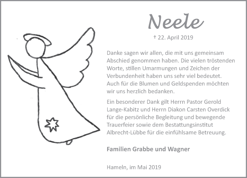 Hier finden Sie alle Traueranzeigen aus der Zeitung, die bisher für Neele erschienen sind. Weitere Traueranzeigen, die in der Zeitung erscheinen, werden hier ebenfalls aufgelistet