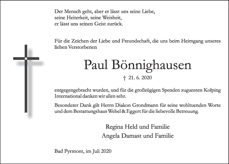 Hier finden Sie alle Traueranzeigen aus der Zeitung, die bisher für Paul Bönnighausen erschienen sind. Weitere Traueranzeigen, die in der Zeitung erscheinen, werden hier ebenfalls aufgelistet