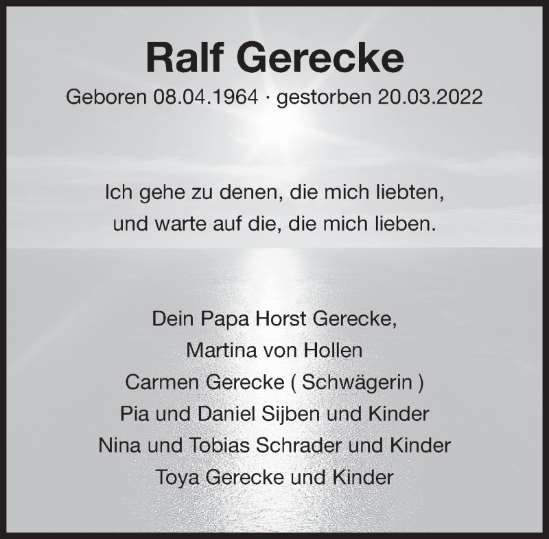 Hier finden Sie alle Traueranzeigen aus der Zeitung, die bisher für Ralf Gerecke erschienen sind. Weitere Traueranzeigen, die in der Zeitung erscheinen, werden hier ebenfalls aufgelistet