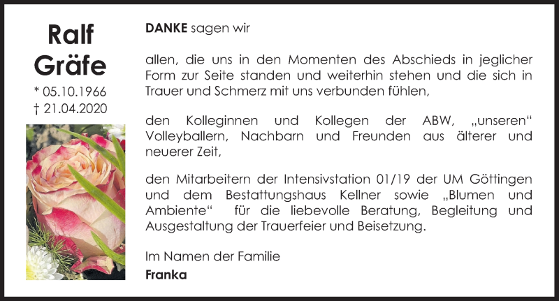 Hier finden Sie alle Traueranzeigen aus der Zeitung, die bisher für Ralf Gräfe erschienen sind. Weitere Traueranzeigen, die in der Zeitung erscheinen, werden hier ebenfalls aufgelistet