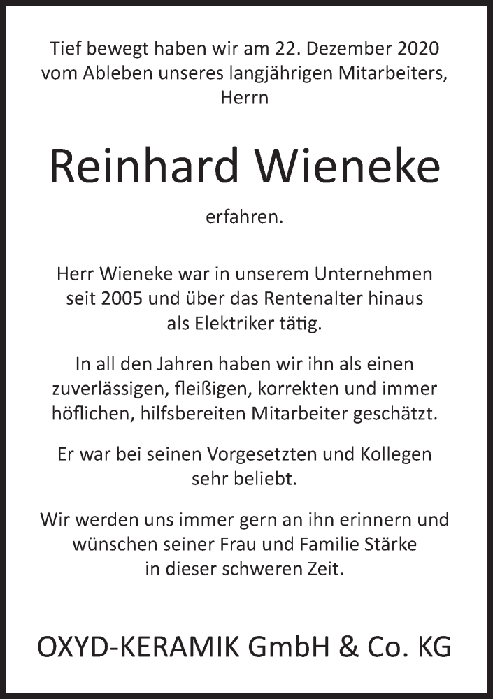 Hier finden Sie alle Traueranzeigen aus der Zeitung, die bisher für Reinhard Wieneke erschienen sind. Weitere Traueranzeigen, die in der Zeitung erscheinen, werden hier ebenfalls aufgelistet