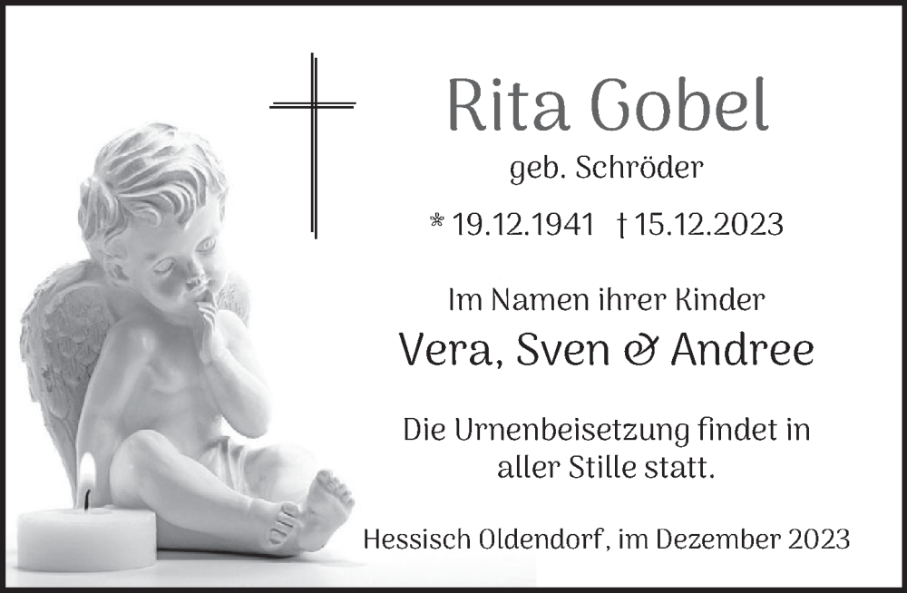Hier finden Sie alle Traueranzeigen aus der Zeitung, die bisher für Rita Gobel erschienen sind. Weitere Traueranzeigen, die in der Zeitung erscheinen, werden hier ebenfalls aufgelistet