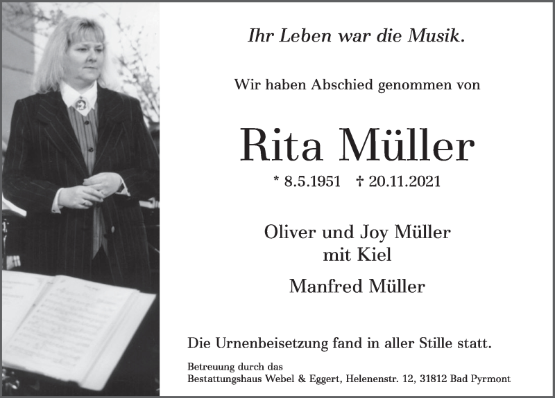 Hier finden Sie alle Traueranzeigen aus der Zeitung, die bisher für Rita Müller erschienen sind. Weitere Traueranzeigen, die in der Zeitung erscheinen, werden hier ebenfalls aufgelistet