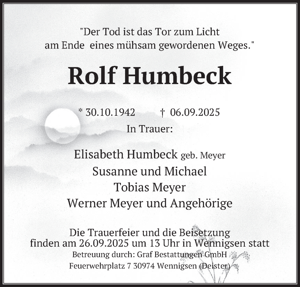 Hier finden Sie alle Traueranzeigen aus der Zeitung, die bisher für Rolf Humbeck erschienen sind. Weitere Traueranzeigen, die in der Zeitung erscheinen, werden hier ebenfalls aufgelistet