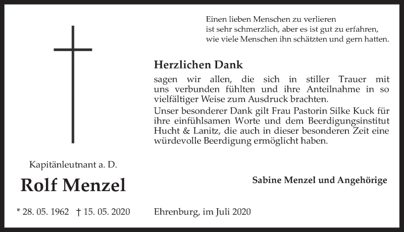 Hier finden Sie alle Traueranzeigen aus der Zeitung, die bisher für Rolf Menzel erschienen sind. Weitere Traueranzeigen, die in der Zeitung erscheinen, werden hier ebenfalls aufgelistet