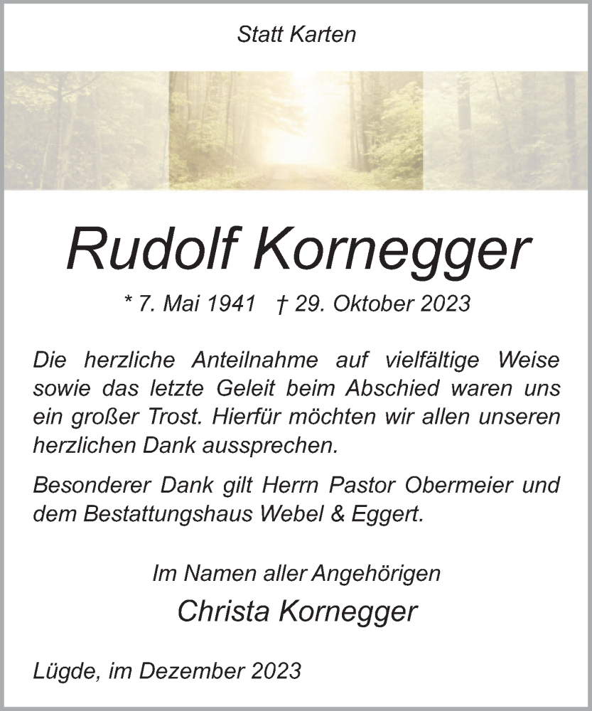 Hier finden Sie alle Traueranzeigen aus der Zeitung, die bisher für Rudolf Kornegger erschienen sind. Weitere Traueranzeigen, die in der Zeitung erscheinen, werden hier ebenfalls aufgelistet
