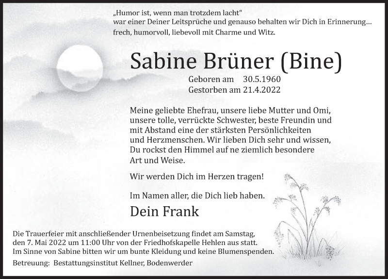 Hier finden Sie alle Traueranzeigen aus der Zeitung, die bisher für Sabine Brüner erschienen sind. Weitere Traueranzeigen, die in der Zeitung erscheinen, werden hier ebenfalls aufgelistet