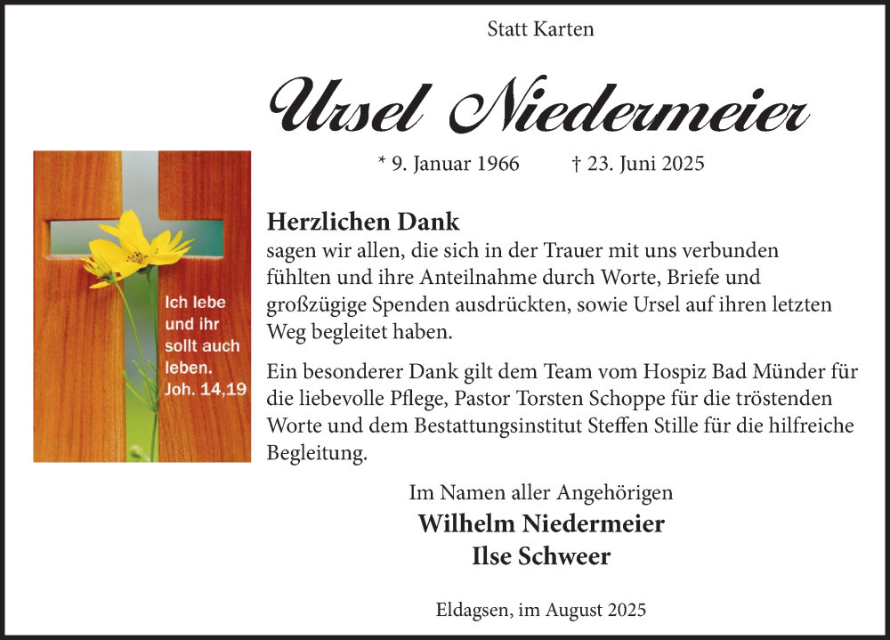 Hier finden Sie alle Traueranzeigen aus der Zeitung, die bisher für Ursel Niedermeier erschienen sind. Weitere Traueranzeigen, die in der Zeitung erscheinen, werden hier ebenfalls aufgelistet