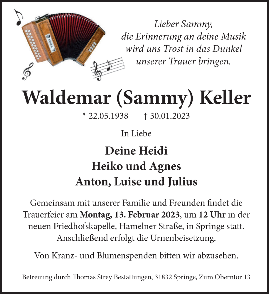 Hier finden Sie alle Traueranzeigen aus der Zeitung, die bisher für Waldemar Keller erschienen sind. Weitere Traueranzeigen, die in der Zeitung erscheinen, werden hier ebenfalls aufgelistet