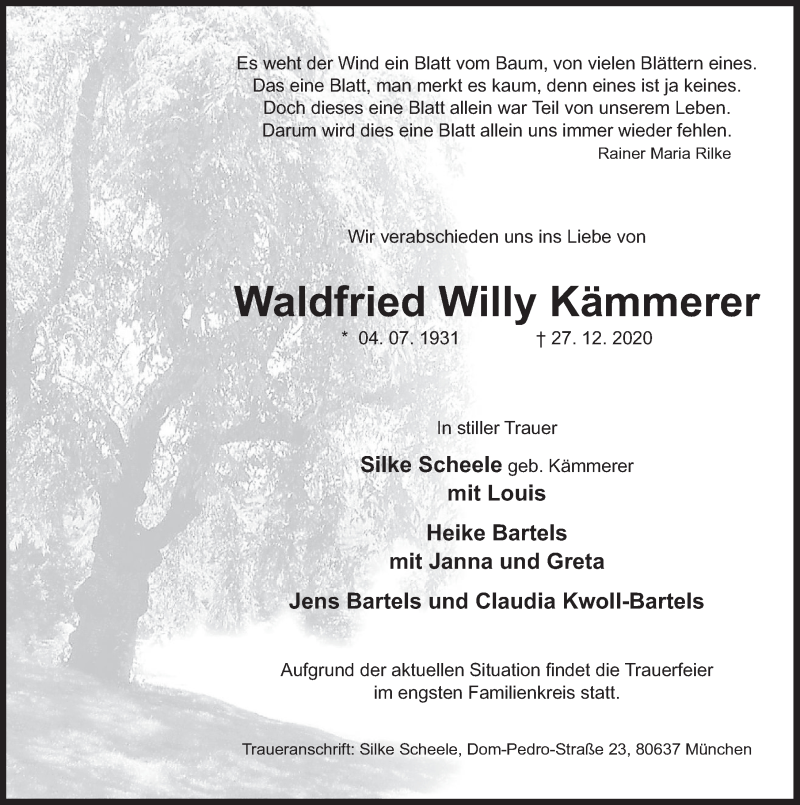 Hier finden Sie alle Traueranzeigen aus der Zeitung, die bisher für Waldfried Willy Kämmerer erschienen sind. Weitere Traueranzeigen, die in der Zeitung erscheinen, werden hier ebenfalls aufgelistet