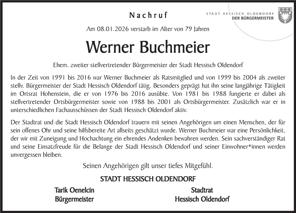Hier finden Sie alle Traueranzeigen aus der Zeitung, die bisher für Werner Buchmeier erschienen sind. Weitere Traueranzeigen, die in der Zeitung erscheinen, werden hier ebenfalls aufgelistet