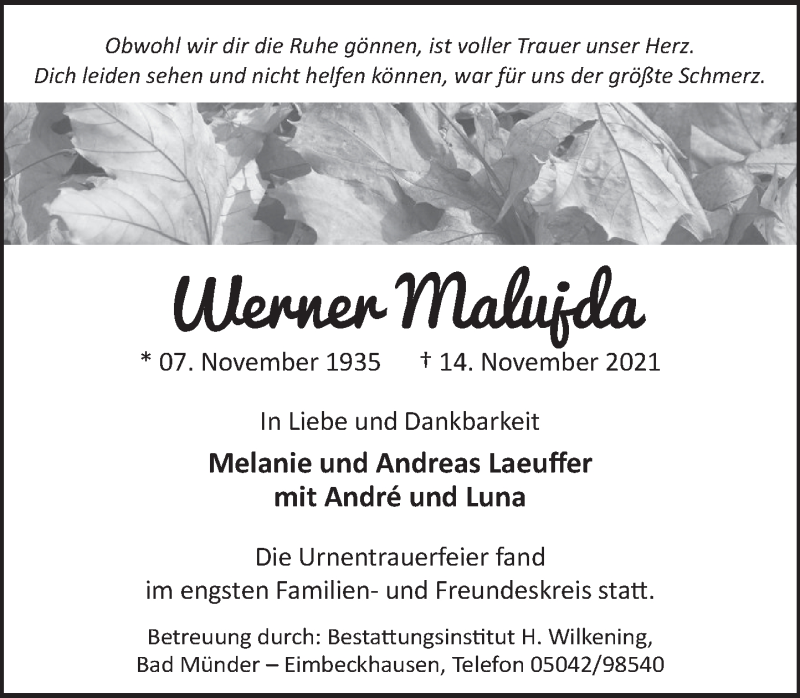 Hier finden Sie alle Traueranzeigen aus der Zeitung, die bisher für Werner Malujda erschienen sind. Weitere Traueranzeigen, die in der Zeitung erscheinen, werden hier ebenfalls aufgelistet