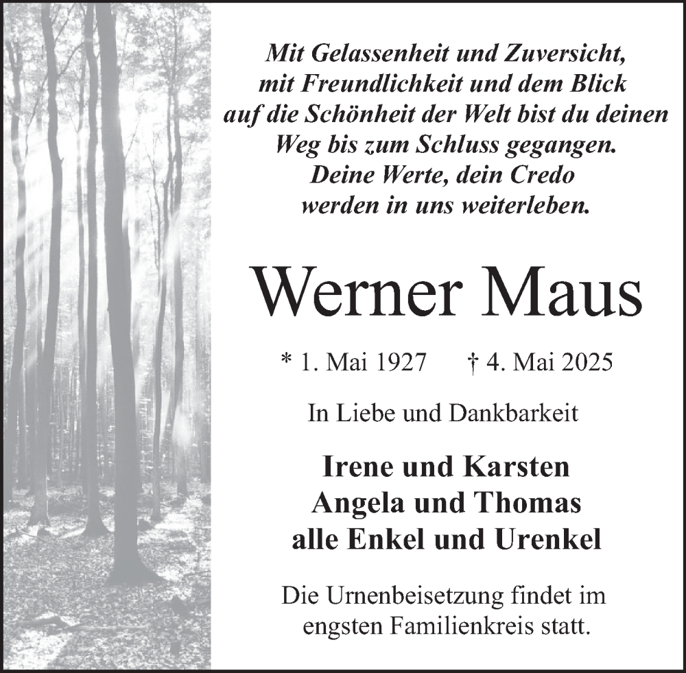 Hier finden Sie alle Traueranzeigen aus der Zeitung, die bisher für Werner Maus erschienen sind. Weitere Traueranzeigen, die in der Zeitung erscheinen, werden hier ebenfalls aufgelistet