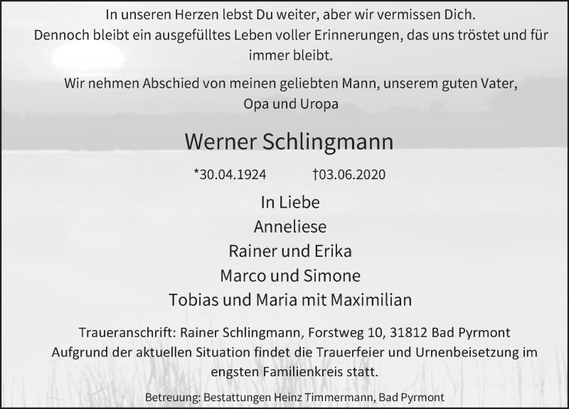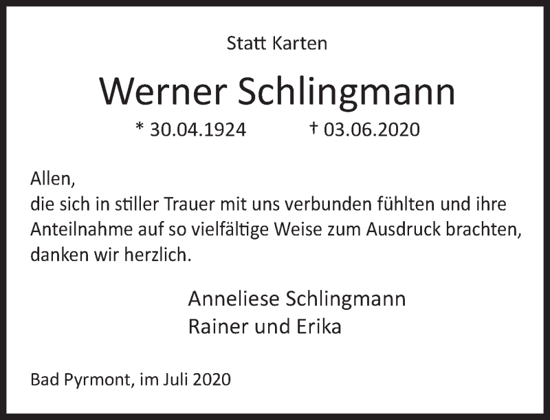 Hier finden Sie alle Traueranzeigen aus der Zeitung, die bisher für Werner Schlingmann erschienen sind. Weitere Traueranzeigen, die in der Zeitung erscheinen, werden hier ebenfalls aufgelistet