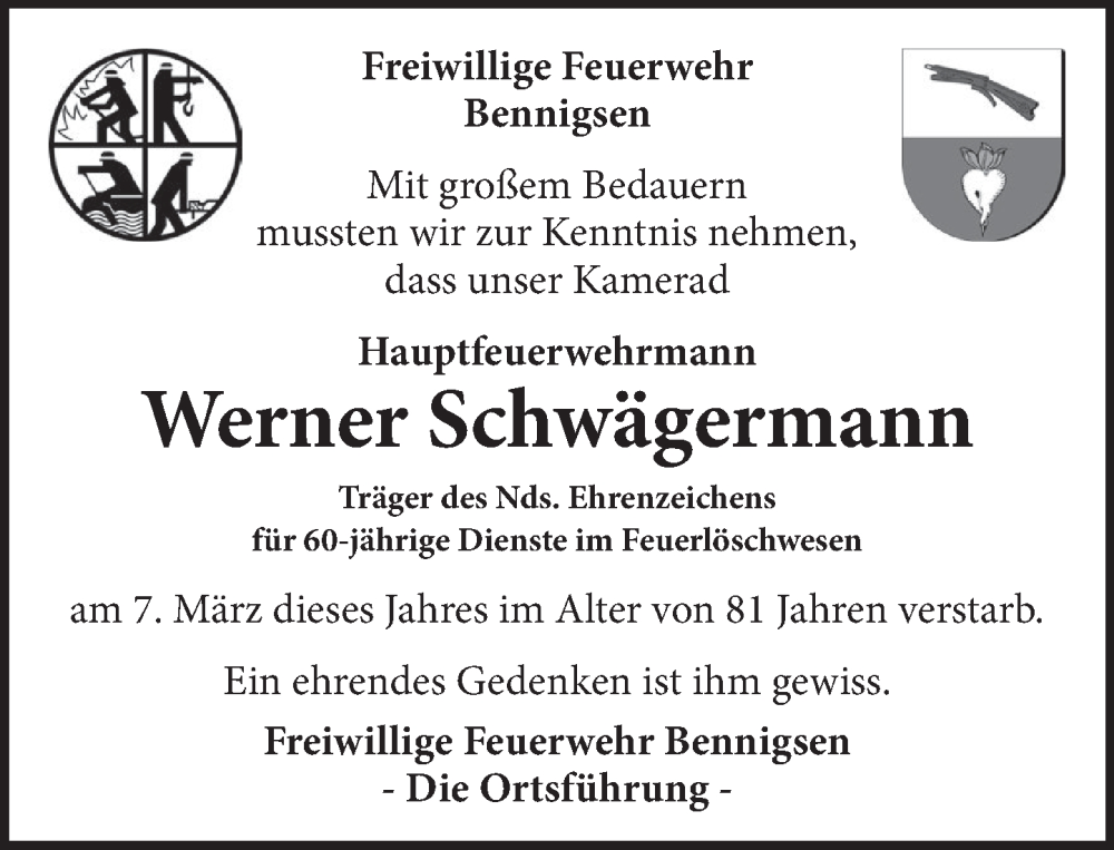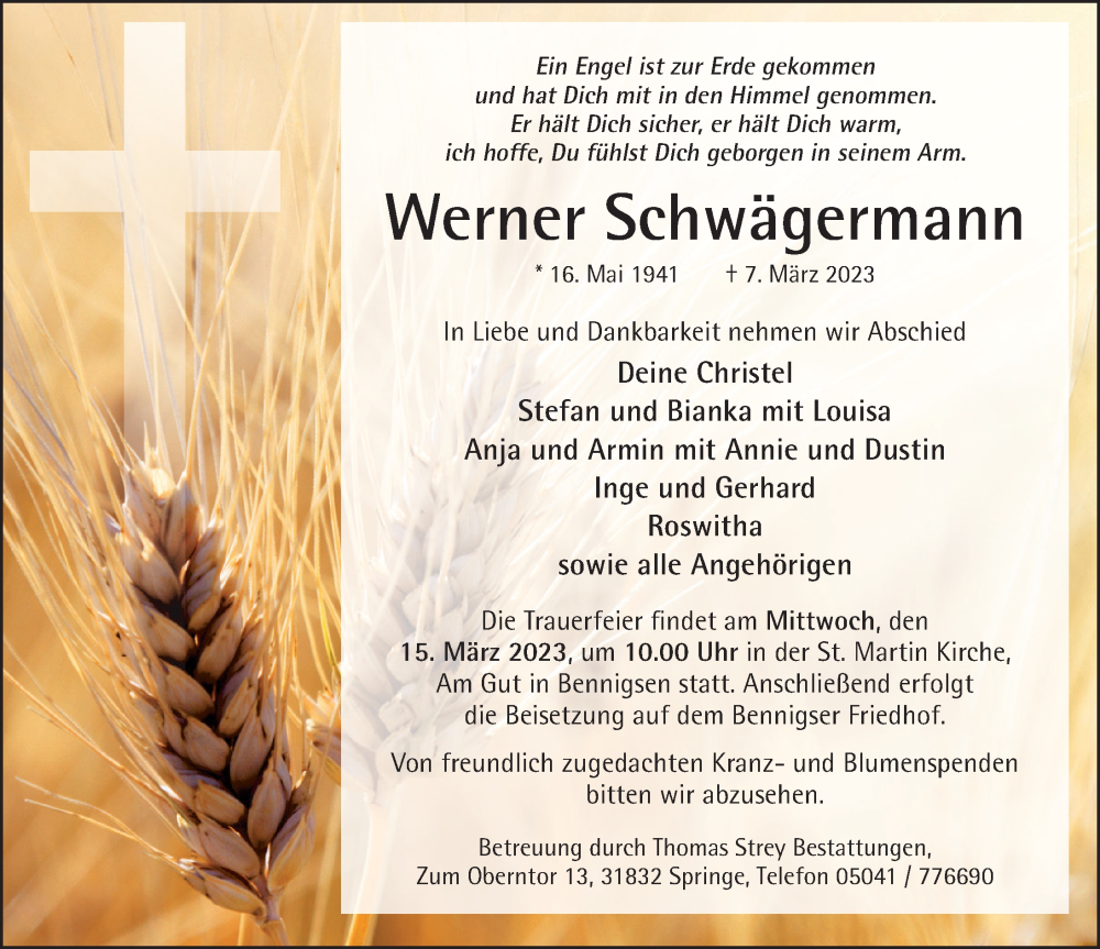 Hier finden Sie alle Traueranzeigen aus der Zeitung, die bisher für Werner Schwägermann erschienen sind. Weitere Traueranzeigen, die in der Zeitung erscheinen, werden hier ebenfalls aufgelistet