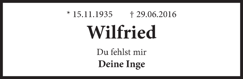 Hier finden Sie alle Traueranzeigen aus der Zeitung, die bisher für Wilfried erschienen sind. Weitere Traueranzeigen, die in der Zeitung erscheinen, werden hier ebenfalls aufgelistet
