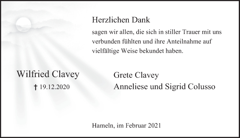 Hier finden Sie alle Traueranzeigen aus der Zeitung, die bisher für Wilfried Clavey erschienen sind. Weitere Traueranzeigen, die in der Zeitung erscheinen, werden hier ebenfalls aufgelistet