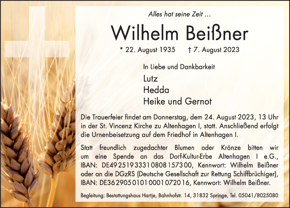Hier finden Sie alle Traueranzeigen aus der Zeitung, die bisher für Wilhelm Beißner erschienen sind. Weitere Traueranzeigen, die in der Zeitung erscheinen, werden hier ebenfalls aufgelistet
