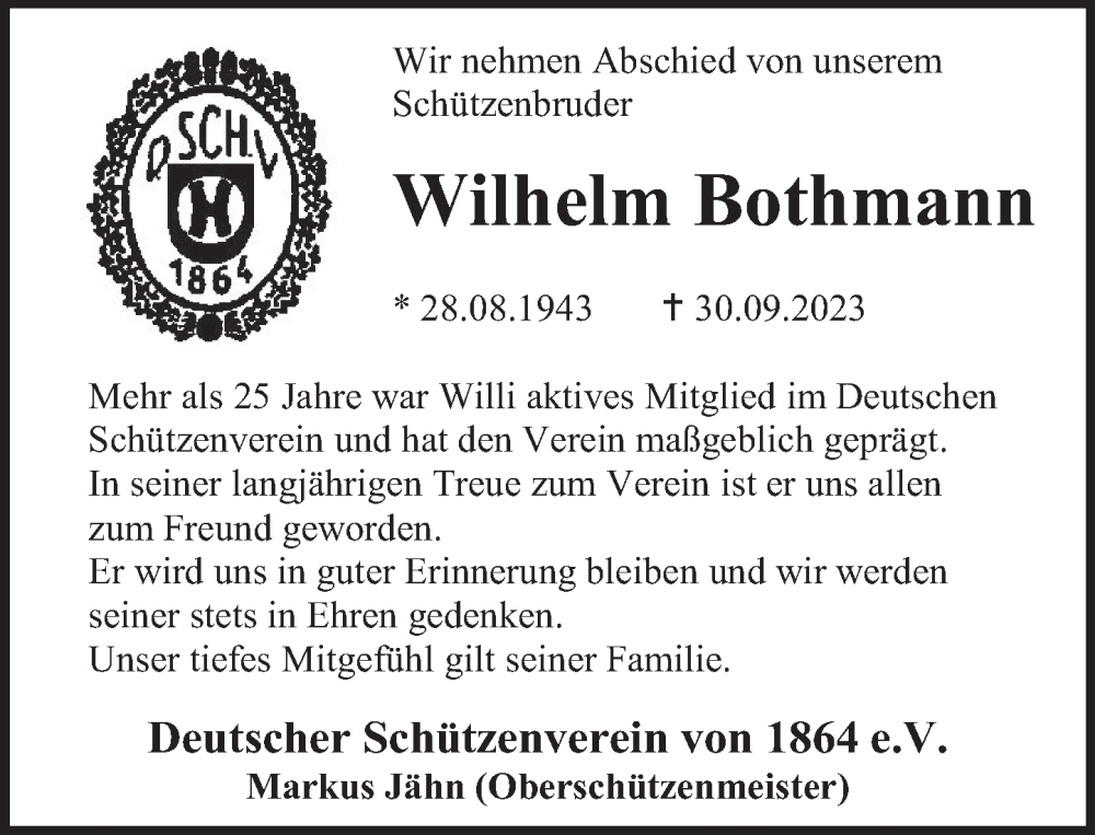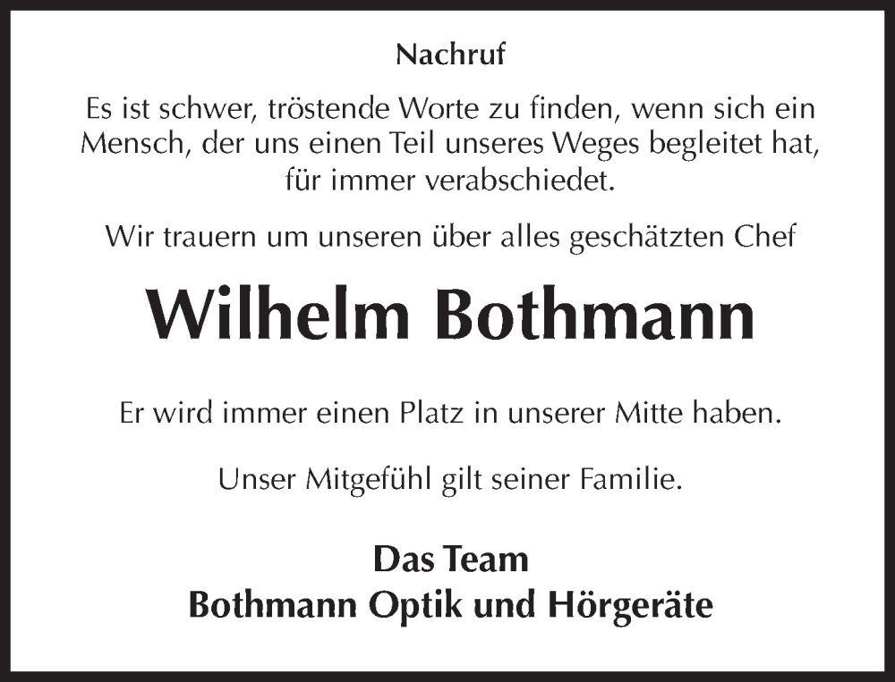 Hier finden Sie alle Traueranzeigen aus der Zeitung, die bisher für Wilhelm Bothmann erschienen sind. Weitere Traueranzeigen, die in der Zeitung erscheinen, werden hier ebenfalls aufgelistet