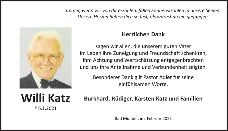Hier finden Sie alle Traueranzeigen aus der Zeitung, die bisher für Willi Katz erschienen sind. Weitere Traueranzeigen, die in der Zeitung erscheinen, werden hier ebenfalls aufgelistet