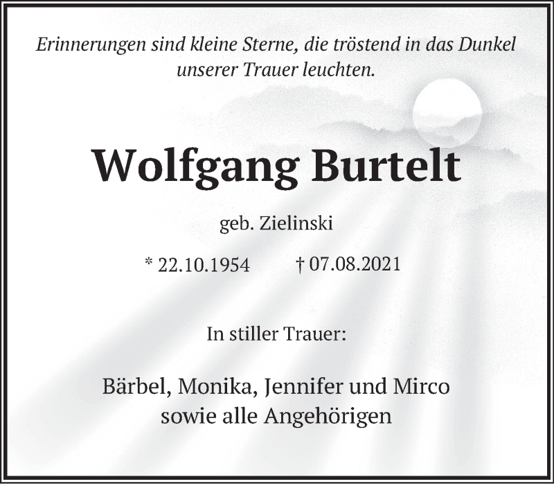 Hier finden Sie alle Traueranzeigen aus der Zeitung, die bisher für Wolfgang Burtelt erschienen sind. Weitere Traueranzeigen, die in der Zeitung erscheinen, werden hier ebenfalls aufgelistet