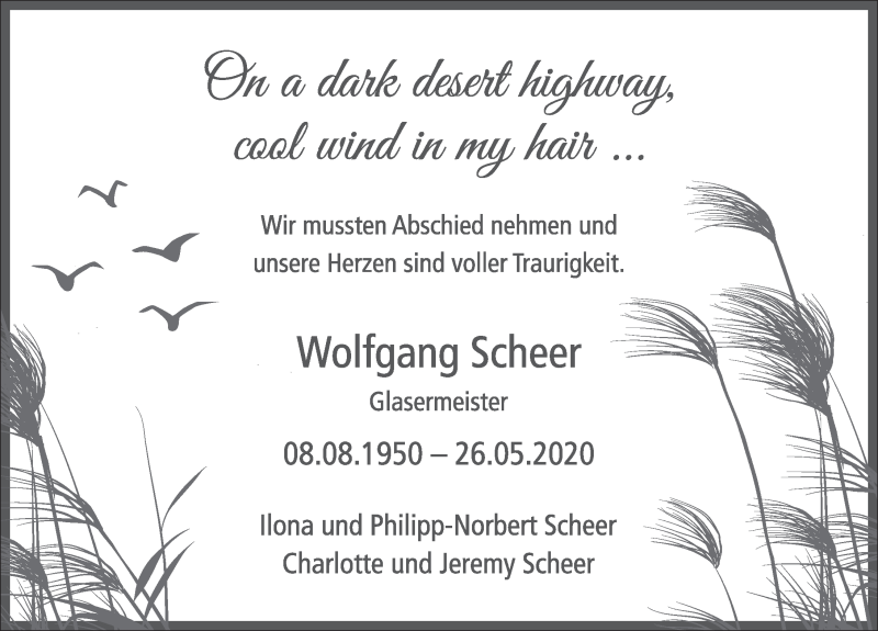 Hier finden Sie alle Traueranzeigen aus der Zeitung, die bisher für Wolfgang Scheer erschienen sind. Weitere Traueranzeigen, die in der Zeitung erscheinen, werden hier ebenfalls aufgelistet
